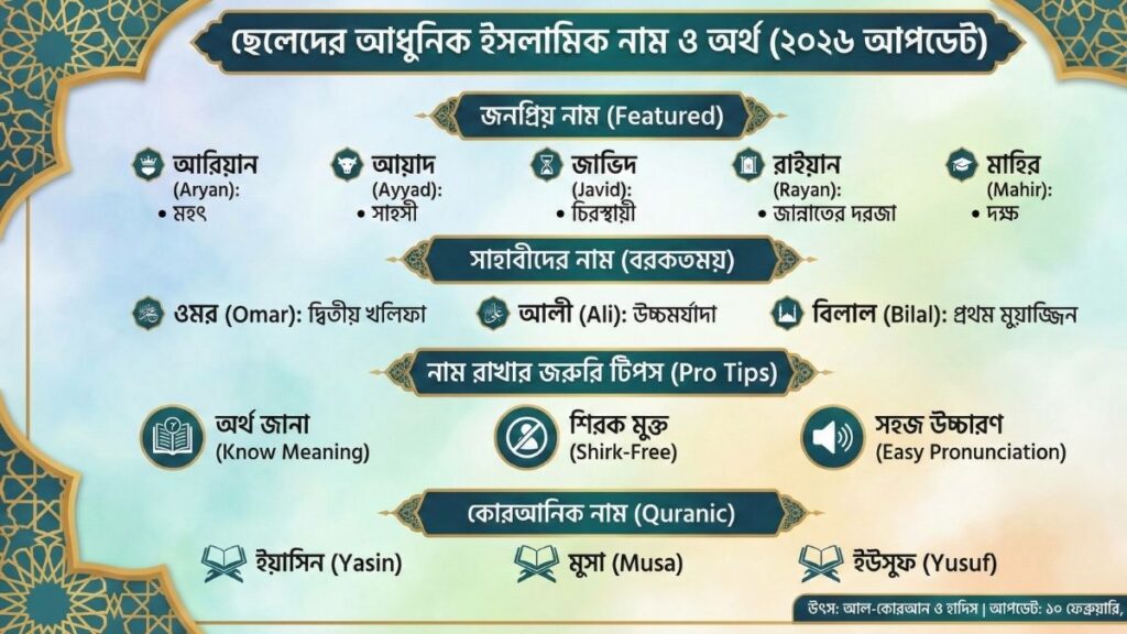ছেলেদের আধুনিক ইসলামিক নাম ও অর্থ