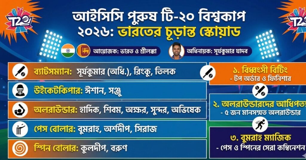 🏏 ভারতীয় স্কোয়াড এক নজরে (Team India Squad 2026)
