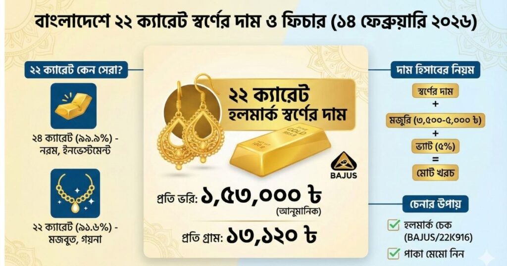বাংলাদেশে ২২ ক্যারেট স্বর্ণের দাম কত (14 February 2026)