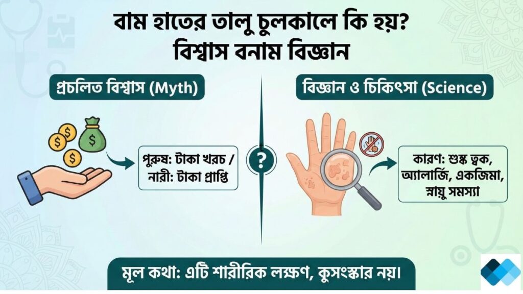 - পুরুষদের ক্ষেত্রে: বাম হাতের তালু চুলকানোকে অশুভ ধরা হয়। মনে করা হয় এতে বড় কোনো খরচ বা আর্থিক ক্ষতির সম্ভাবনা থাকে।