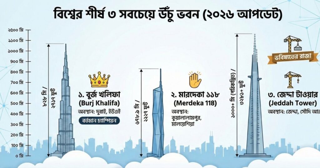 এই আর্টিকেলে আমরা শুধুমাত্র ভবনের উচ্চতাই জানব না, বরং এর পিছনের টেকনোলজি, খরচ এবং Top 10 Tallest Buildings in the World সম্পর্কে বিস্তারিত জানব। এই তথ্যগুলো আপনাকে শুধু জ্ঞানই দেবে না, বরং আপনার পরবর্তী ভ্রমণের পরিকল্পনাতেও সাহায্য করবে।
