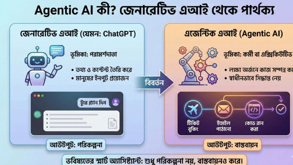 জেনারেটিভ এআই ও এজেন্টিক এআই এর মধ্যে পার্থক্য