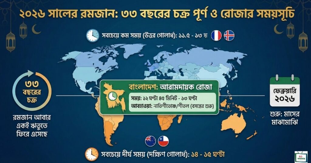 ২০২৬ সালের রমজান মাসটি মুসলিম বিশ্বের জন্য কিছুটা ভিন্ন আমেজ নিয়ে আসছে। দীর্ঘ ৩৩ বছর পর রোজা এবং ঋতুর একটি